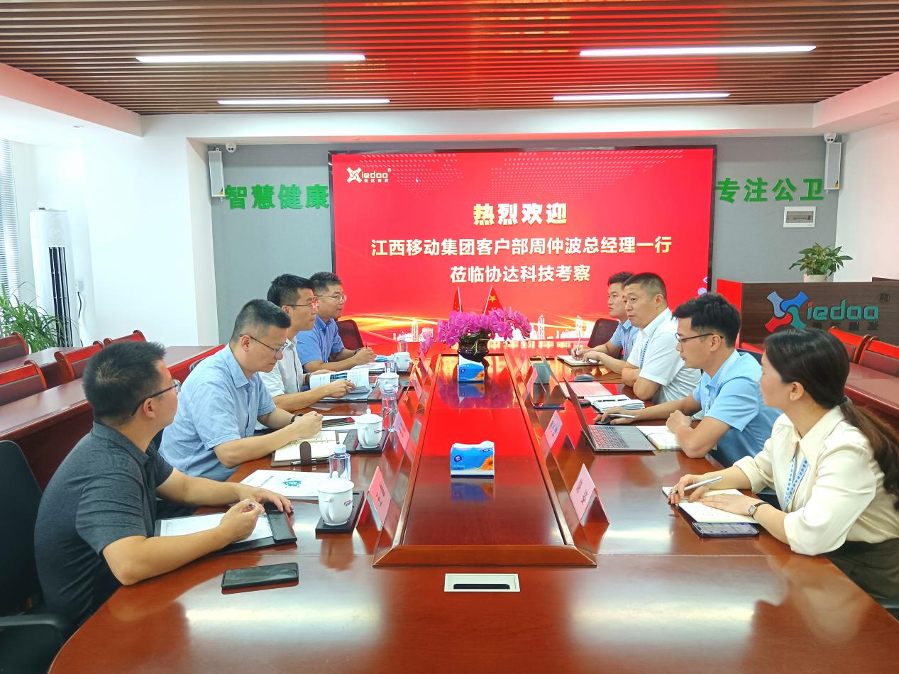 9月15日下午,江西移動(dòng)集團(tuán)客戶部總經(jīng)理周仲波、副總經(jīng)理曹勤一行數(shù)人蒞臨我司,我司總經(jīng)理陳尚嶸協(xié)同副總經(jīng)理熊小波、技術(shù)中心負(fù)責(zé)人魏志豪等人參與接待交流,并對(duì)周總一行的到來表示誠摯的歡迎!
