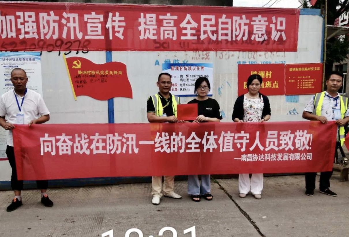 “暴雨卷起千重浪,干群同心抗洪災(zāi)”。疫情未散,洪災(zāi)來(lái)襲,面對(duì)嚴(yán)峻的防汛形勢(shì),協(xié)達(dá)科技工作人員代表全體公司同仁,前往南昌市東湖區(qū)滕洲村慰問(wèn)抗洪一線干部群眾,向他們克服困難戰(zhàn)勝洪水的精神表示崇高的敬意!并向他們捐獻(xiàn)慰問(wèn)金,相信在黨和政府的堅(jiān)強(qiáng)領(lǐng)導(dǎo)下一定能戰(zhàn)勝天災(zāi),眾志成城定能山河無(wú)恙。